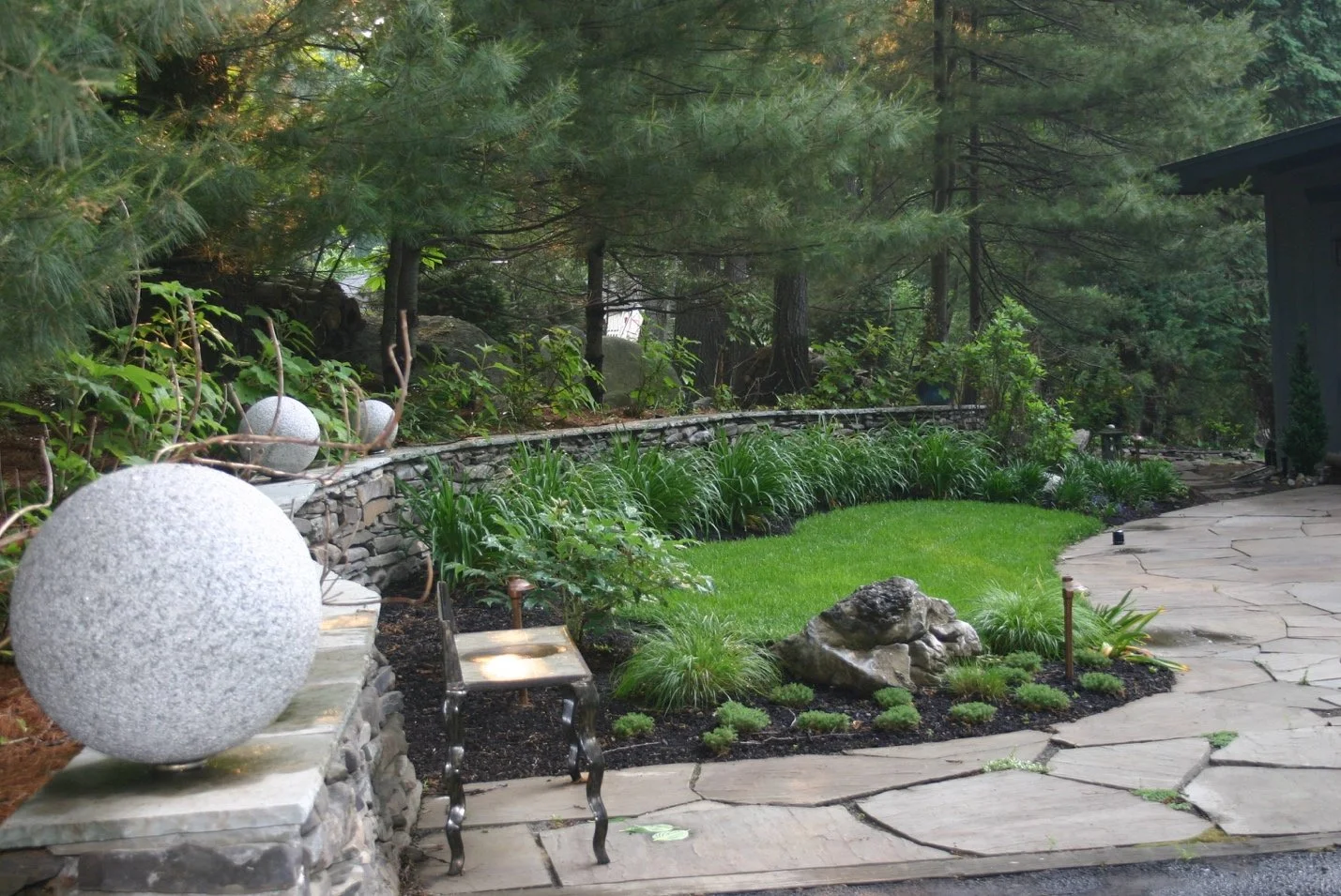 This once blistering hot and outdated patio has become an inviting area that beckons to be enjoyed. Tranquil gardens of green and white accompany an easy-to-maintain yet elegant water feature, crafting a serene oasis of relaxation.